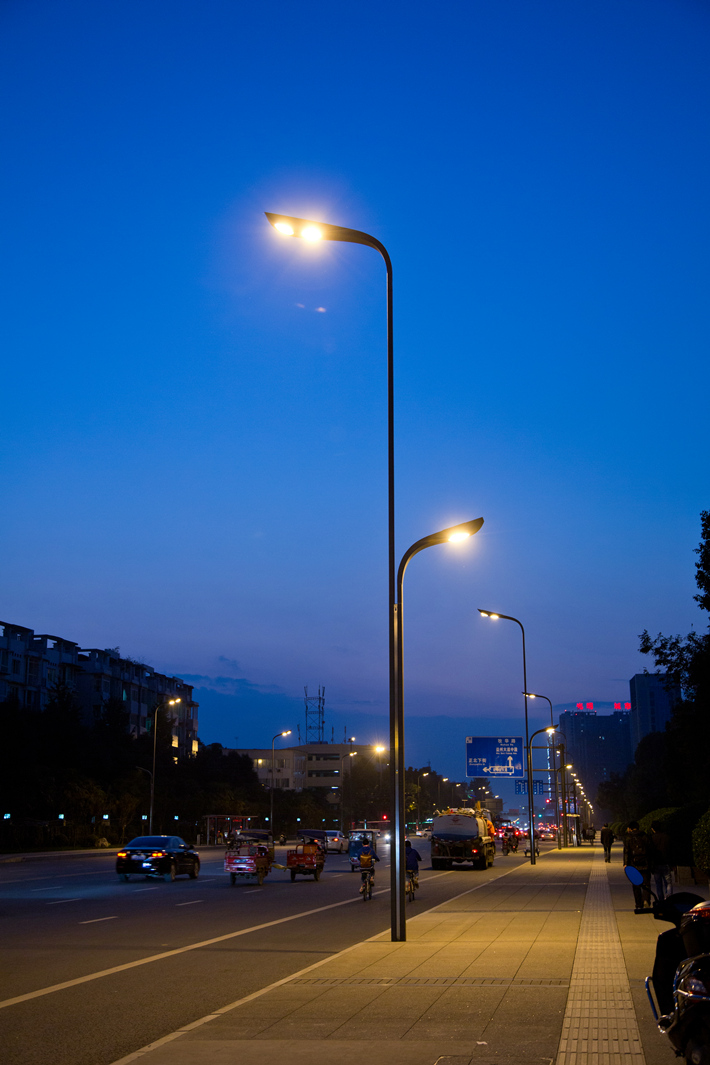 迎賓大道,是北京王府井新區(qū)的重要交通要道。2016年3月,耀星光電公司為王府井大道生產(chǎn)制作、安裝了147盞雙葉燈。雙葉燈,是以象征禮節(jié)的“茶葉”為設計元素,融入現(xiàn)代簡潔的線條,時尚有韻味,外觀美麗大方,環(huán)保節(jié)能。燈頭采用茶葉瓣的形式,實現(xiàn)了燈桿與燈頭的實體連接,在原有景觀照明基礎上,增加了功能照明,使功能照明和景觀照明完美結(jié)合。該款燈在王府井大道的運用,寓意歡迎“自遠方來的朋友”。