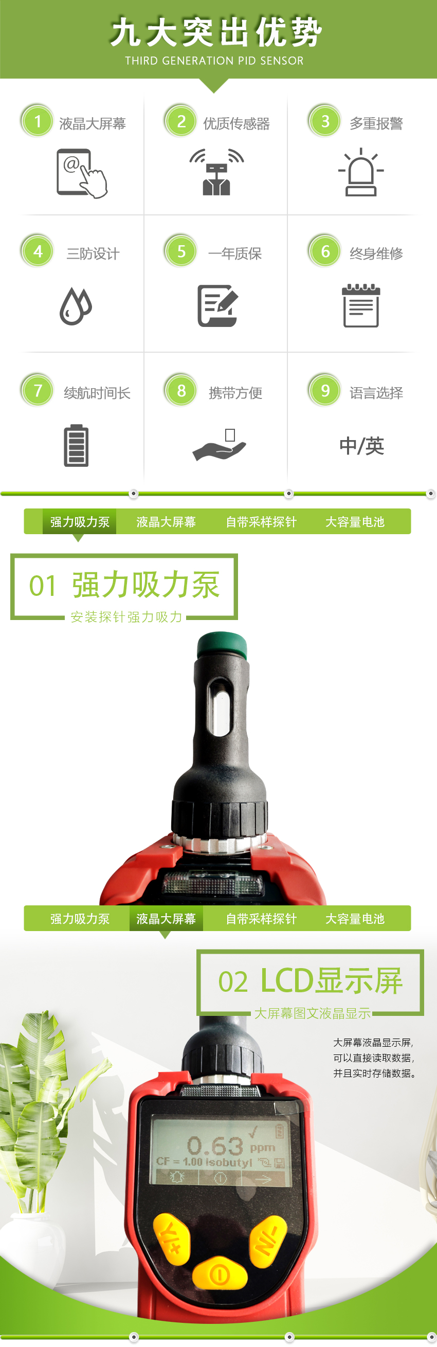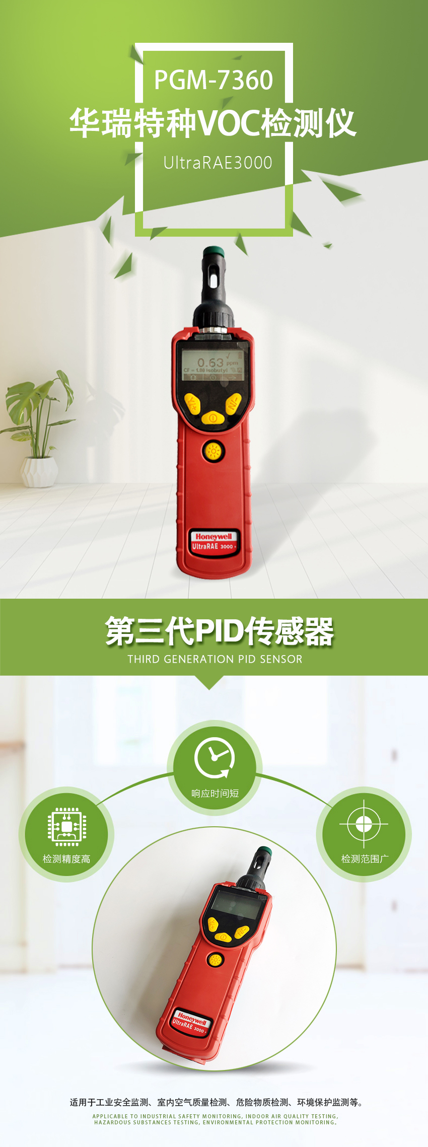 1、第三代PID傳感器,響應時間短,檢測范圍寬
