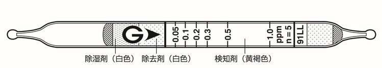 檢測(cè)線:0.03ppm(抽氣5次)顏色變化:黃褐色→粉色