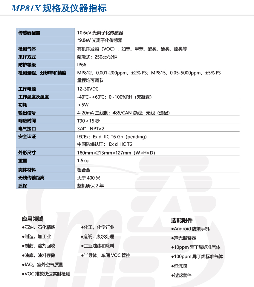 產(chǎn)品名稱:美國(guó)盟莆安固定式VOC檢測(cè)儀MP812