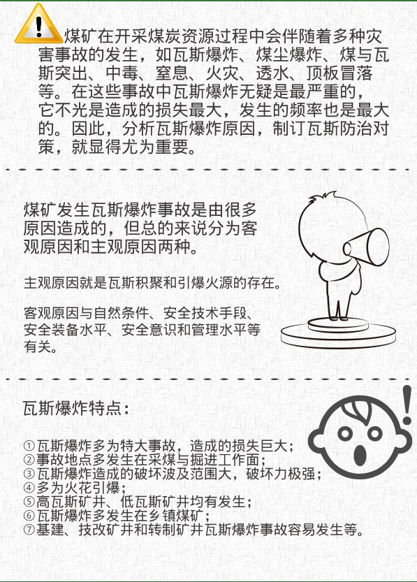 礦難,指在采礦過程中發(fā)生的事故,通常造成傷亡的危險(xiǎn)性*大。引發(fā)礦難的原因可能有多種,包括有毒氣體泄漏(硫化氫)或者天然氣爆炸(比如甲烷),煤炭粉塵爆炸,地震活動(dòng)、水災(zāi)或者機(jī)械故障及指揮失誤等。但礦井事故站多數(shù)為氣體爆炸所引發(fā),采礦層面瓦斯?jié)舛冗^高,達(dá)到爆炸的*限,若有引爆條件時(shí)(如鐵鍬碰撞石炭產(chǎn)生火花,電器開關(guān)電弧等)即可產(chǎn)生瓦斯爆炸,采煤層若通風(fēng)不暢,安全監(jiān)測不到位也可引起瓦斯積累,也是非常危險(xiǎn)的。