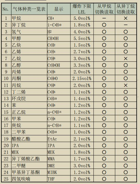 1、搭載可對(duì)測(cè)定氣體種類(lèi)進(jìn)行選擇的功能,可檢測(cè)25種可燃性氣體;