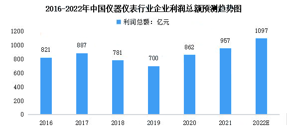 在行業(yè)規(guī)模不斷增長(zhǎng)的同時(shí),我國(guó)儀器儀表行業(yè)的產(chǎn)業(yè)鏈和技術(shù)實(shí)力也發(fā)展較快,形成了比較完整的產(chǎn)業(yè)體系和技術(shù)創(chuàng)新體系,拉近了和國(guó)際先進(jìn)水平之間的差距。盈利能力方面,根據(jù)上海儀器儀表行業(yè)協(xié)會(huì)發(fā)布的數(shù)據(jù),2017年我國(guó)儀器儀表行業(yè)企業(yè)利潤(rùn)總額小幅上升后下降至2019年的700億元,2019-2021年呈增長(zhǎng)的趨勢(shì),2021年達(dá)957億元。其增長(zhǎng)速度整體而言高于主營(yíng)收入的增長(zhǎng)速度,說(shuō)明我國(guó)儀器儀表行業(yè)的盈利能力不斷提升,已步入高質(zhì)量發(fā)展階段。中商產(chǎn)業(yè)研究院預(yù)測(cè),2022年我國(guó)儀器儀表行業(yè)企業(yè)利潤(rùn)總額將達(dá)1097億元。