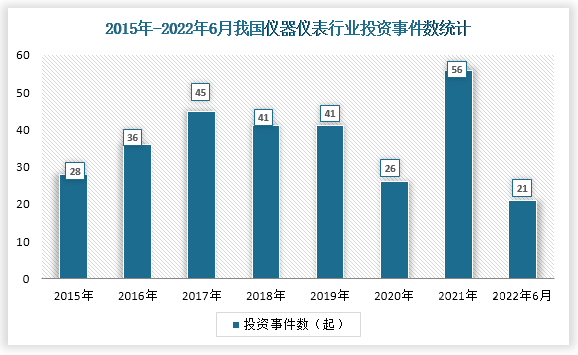 數(shù)據(jù)顯示,我國(guó)儀器儀表行業(yè)投資事件數(shù)在2016-2020年間逐年下降,2021年投資事件數(shù)19起,較前年增長(zhǎng)了9起。截至2022年6月23日,我國(guó)儀器儀表行業(yè)投資事件數(shù)為3起。