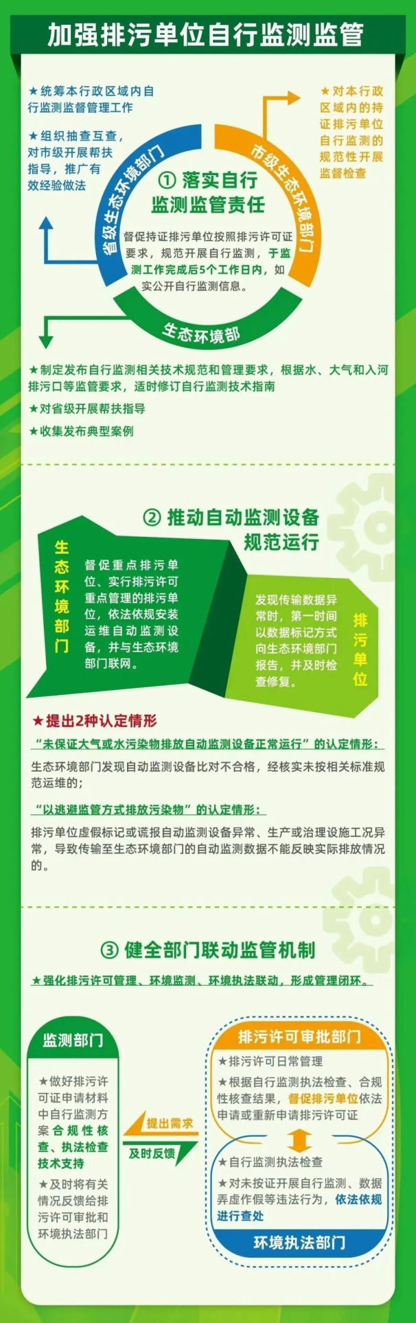 《通知》規(guī)定了各級(jí)生態(tài)環(huán)境部門(mén)的自行監(jiān)測(cè)監(jiān)管責(zé)任,明確了環(huán)境監(jiān)測(cè)部門(mén)、排污許可審批部門(mén)、環(huán)境執(zhí)法部門(mén)聯(lián)動(dòng)監(jiān)管機(jī)制。