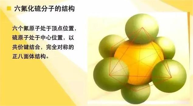 六氟化硫,是一種無機化合物,化學式為SF6,常溫常壓下為無色無臭無毒不燃的穩(wěn)定氣體,分子量為146.055,在20℃和0.1 MPa時密度為6.0886kg/m3,約為空氣密度的5倍,六氟化硫分子結(jié)構(gòu)呈八面體排布,鍵合距離小、鍵合能高,因此其穩(wěn)定性很高,在溫度不超過180℃時,它與電氣結(jié)構(gòu)材料的相容性和氮氣相似。
