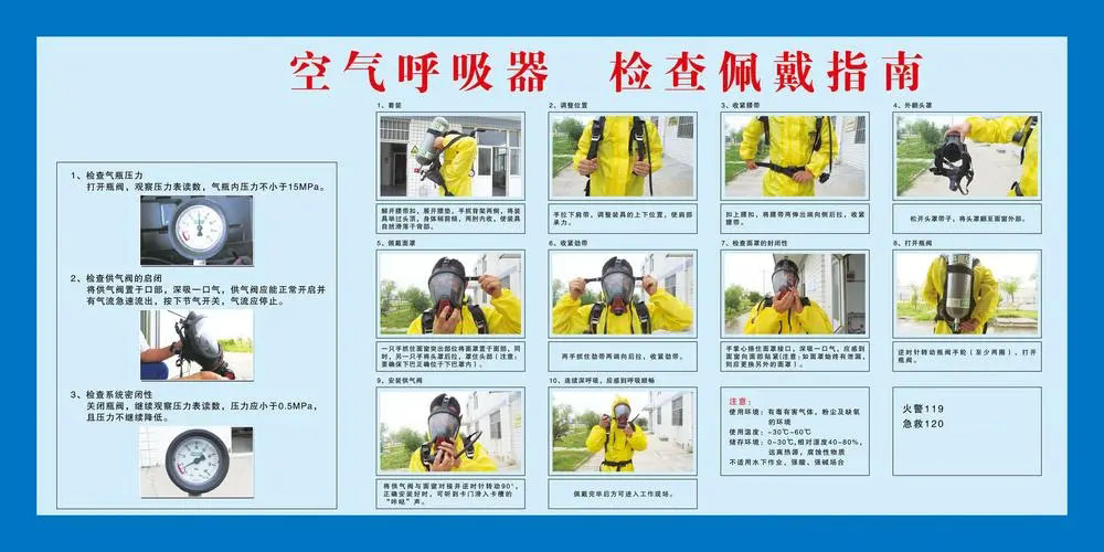 使用人員在使用本呼吸器前應(yīng)接受專業(yè)培訓(xùn),并經(jīng)考核合格后方可佩戴進(jìn)行作業(yè)使用。使用過程中必須確保氣瓶閥一直處于安全打開狀態(tài)。