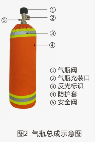 呼吸器主要由氣瓶總成、減壓器總成、全面罩總成、供氣閥總成、背托總成共五個(gè)部分組成,另配有工具包、收納袋和器材箱。