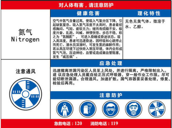 2.對崗位工人進行安全知識教育,使其了解、掌握氮氣的理化性質、事故預防及應急措施。
