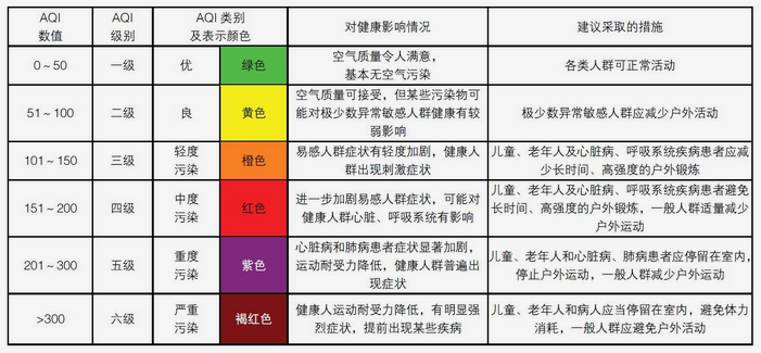 其具體標(biāo)準(zhǔn)如下:當(dāng)空氣污染指數(shù)達(dá)0-50時(shí)為1級(jí);51-100時(shí)為2級(jí);101-150時(shí)為3級(jí);151-200為4級(jí);201-300時(shí)為5級(jí);300以上時(shí)為6級(jí)。其中3級(jí)屬于輕度污染,4級(jí)屬于中度污染,5級(jí)則屬于重度污染,6級(jí)則屬于嚴(yán)重污染。