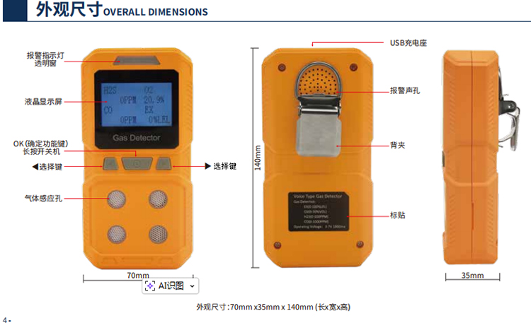 4、使用高清LCD液晶屏,清晰呈現(xiàn)各項(xiàng)氣體檢測指標(biāo);